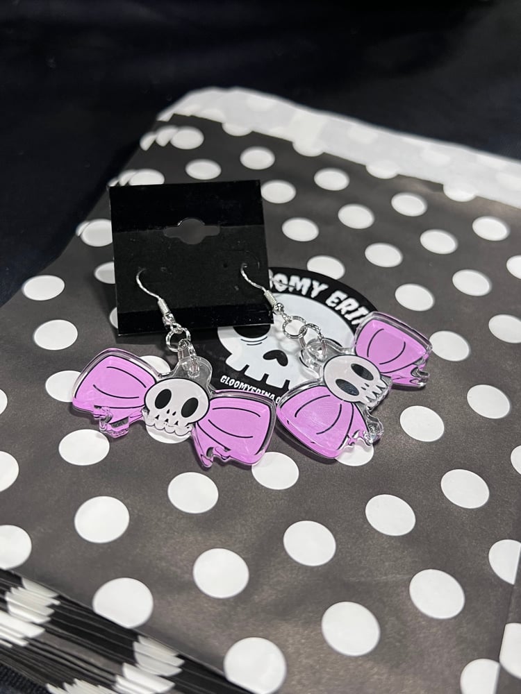 Halloween Ghost and Jack O Lantern original art acrylic earrings with stainless steel ear wires. Total earring length including ear wires is 2 inches. Comes on black flocked earring card ready for gift giving.